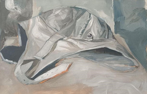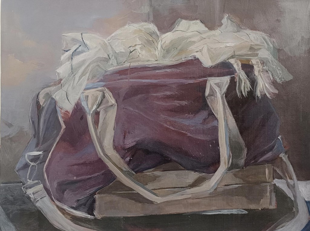 Life painting of Esugen’s bag exploring travel, depression, lonliness and hope