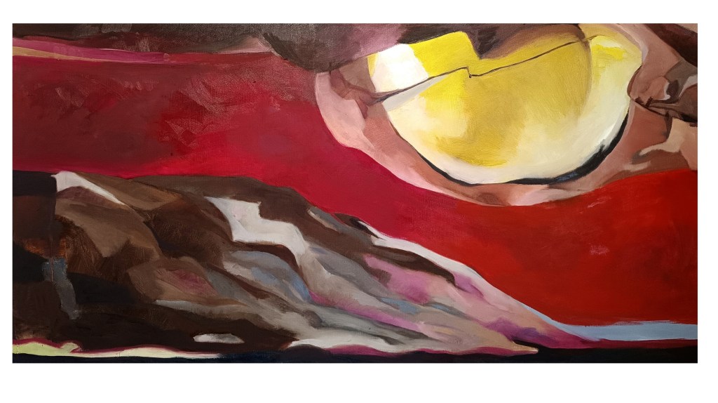 Imaginative inner-landscape potrays a self-potrait, exploring the somatic relationship of the body to the psyche – exploring pain, self-hood, femininity and the psyche.