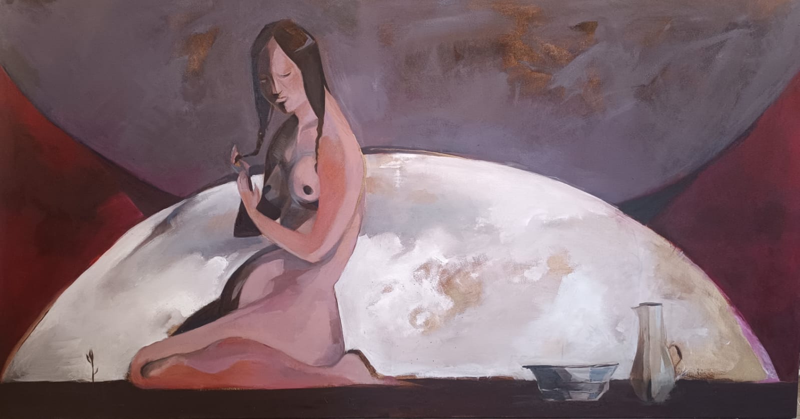 Esugen’s painting and drawing process revolves around life and imagination as a way to fully articulate the different layers of the mind through impulse and intuition. Through technique, she believes painting is a visual form of music, having composed a rhythm through the body from the conscious and subconsciousness.